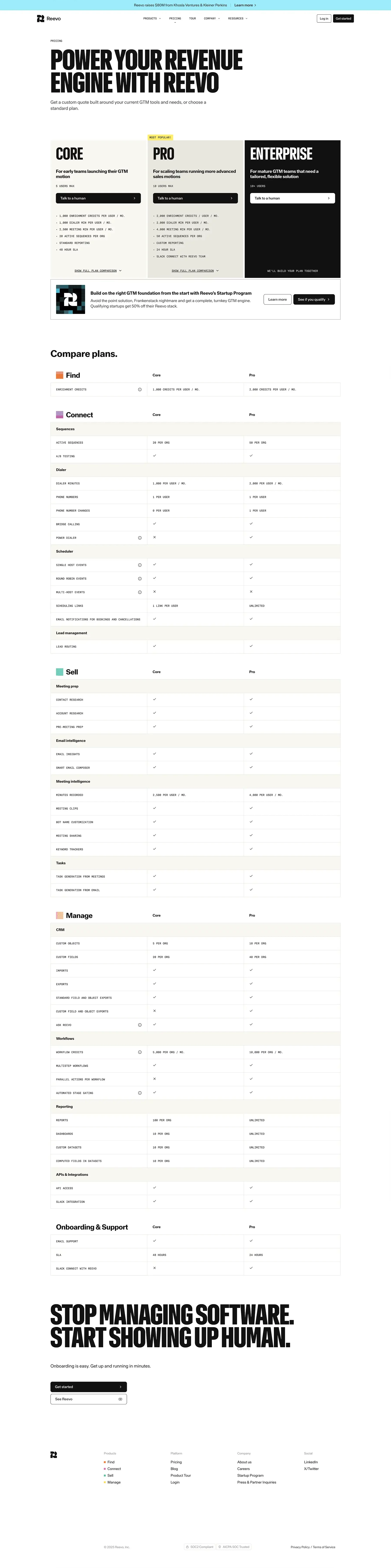 Reevo Pricing Page Example